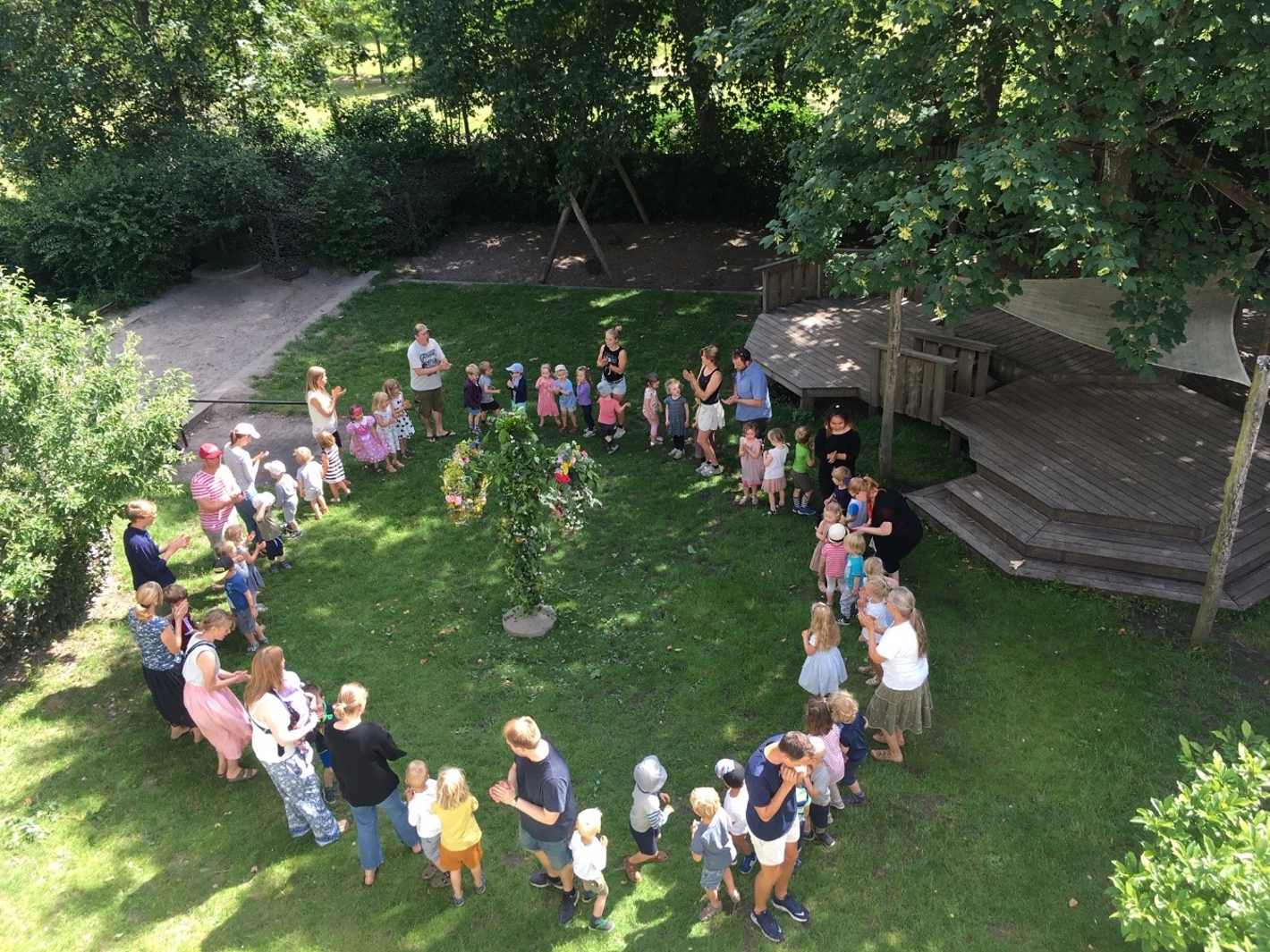 Kl. 9.00 samles alle børn, personale og de forældre, der har tid, i en rundkreds på Legestuen.